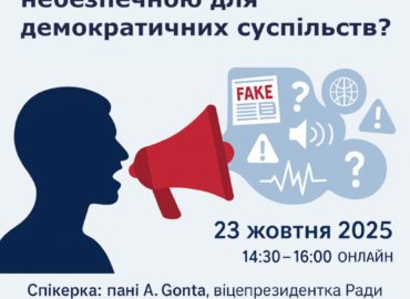 Дата: 23 жовтня 2025 року Час: 14:30 – 16:00 (онлайн) Спікерка: пані A. Gonta, віцепрезидентка Ради з питань аудіовізуалу Республіки Молдова, тренерка […]