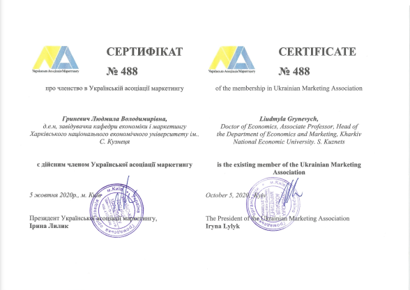 Член науково-методичної комісії (підкомісії) сектору вищої освіти Науково-методичної ради МОН України підкомісія D5 Маркетинг.