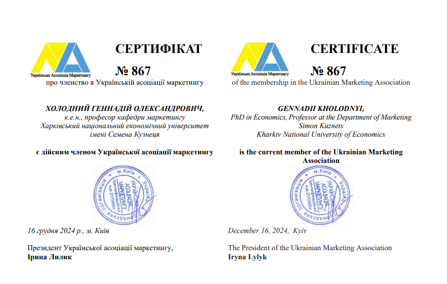 Навчальні курси: товарна інноваційна політика, маркетингова товарна політика, управління товарними марками, маркетинг, інтернет-маркетинг, дизайн рішення в маркетингу.